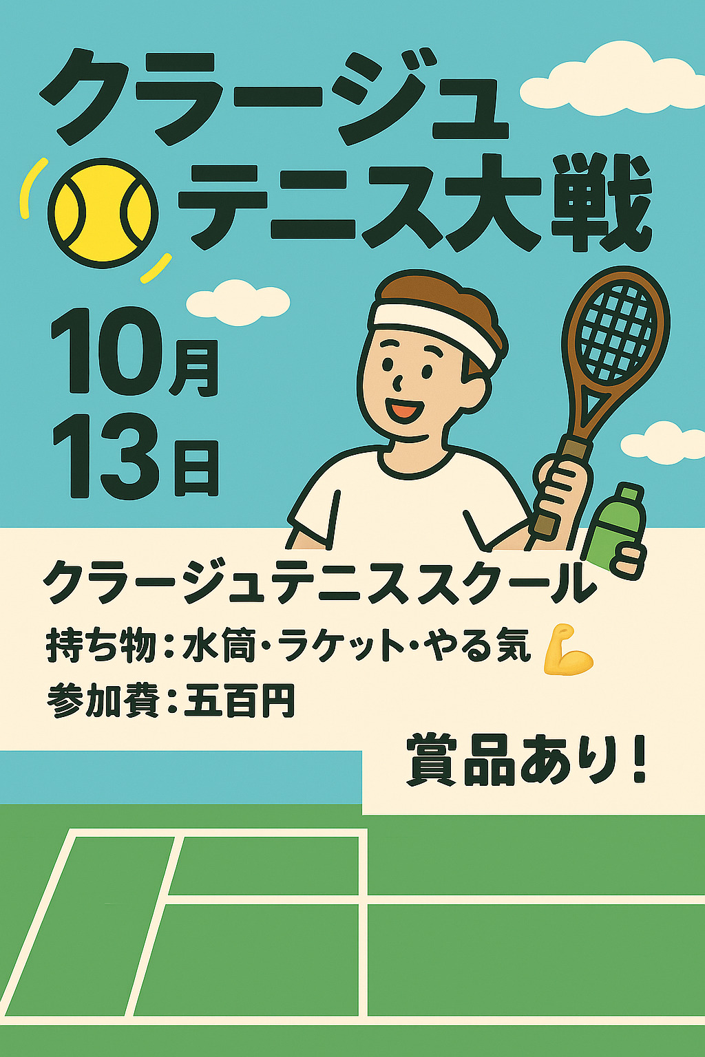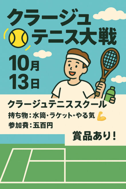 秋!スポーツの秋!の10/13(月㊗)にJrクラス対象のクラージュ杯を実施します🏆